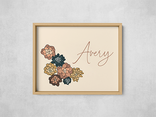 Inspired by Mid Century Modern living rooms, sun-drenched windows, and those perfect terra cotta pots—this collection features hand-illustrated succulents and leafy greens with a retro twist.